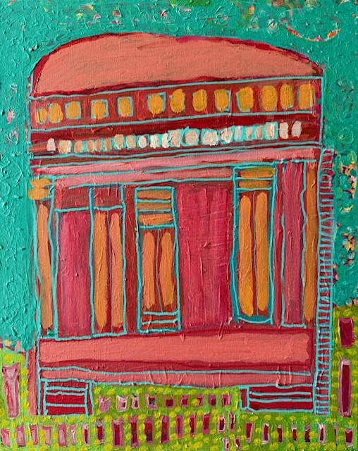 This painting reimagines the town hall through energetic colour and rhythmic pattern, reflecting not just the building’s forms but Lucah’s delight in discovering the extraordinary within the everyday. Through this work, he invites viewers to reconnect with their environments—finding joy, wonder, and renewed attention in the small details that shape the places around them.